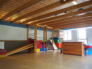 Der Bewegungsraum (70 qm) bietet den Kindern viel Platz zum toben, klettern, balancieren, springen und schaukeln. Fahrzeuge stehen ihnen zur Verfügung die unter Aufsicht genutzt werden können.